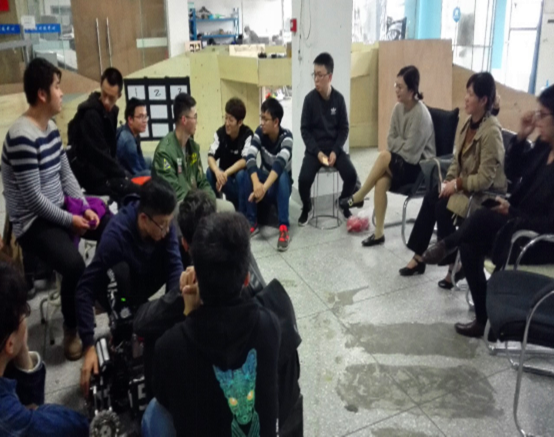 工程训练中心与校机器人队指导教练组指导教师何俐萍老师、何倩鸿老师以及孙锐老师携校机器人RM队伍主要核心队员20余人一起,在研究院大楼4楼RM训练基地与川大的老师和同学们围坐在一起举行了一个友好的交流会,共同探讨了两校机器人队的历史沿革、技术传承、交流了相关技术细节,并研讨了19届规则变化,同时现场几位指导教师也为川大队员们提出的问题进行了实时解答,鼓励两校机器人队在19赛季要更加注重细节,争取突破自我,取得佳绩。交流会后,是两校队员之间近2小时的亲切交流时间,以建立起两校机器人队良好的沟通基础。