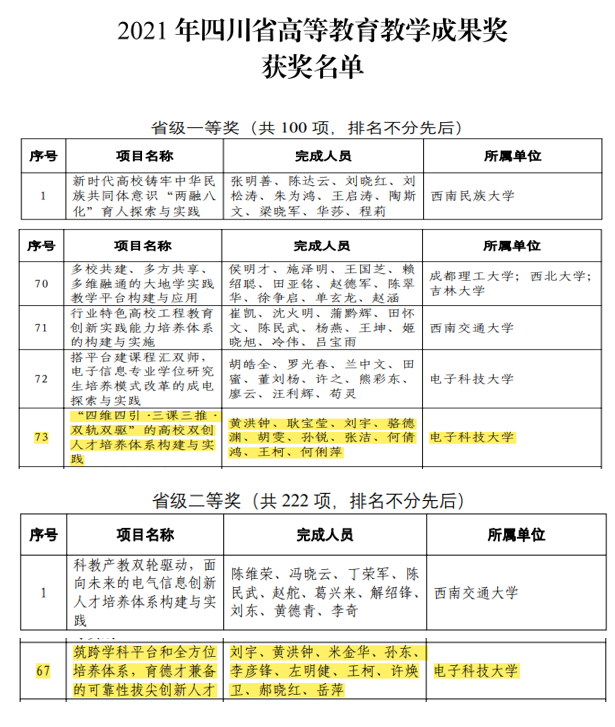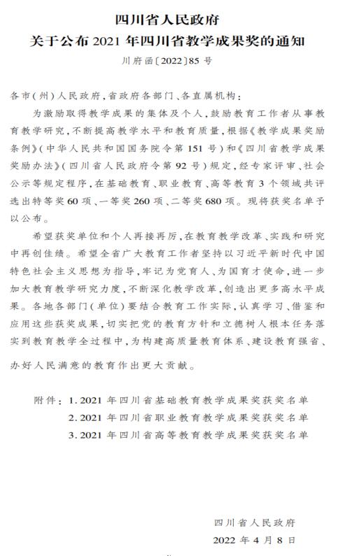 四川省高等教育教学成果奖一等奖