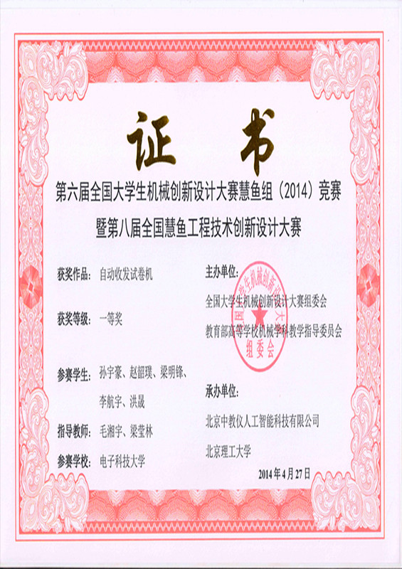 第六届全国大学生机械创新设计大赛一等奖